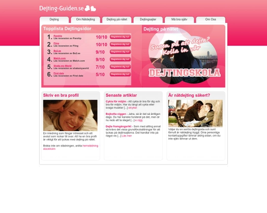 Dejting-guiden.se är en oumbärlig resurs för alla som är intresserade av nätdejting. Med en genomarbetad och användarvänlig plattform erbjuder de värdefulla insikter och råd för både nybörjare och erfarna online-daters. Deras topplistor, säkerhetsråd och artiklar bidrar alla till att göra ditt dejtande så framgångsrikt som möjligt. Oavsett om du söker efter tips på hur du skriver en bättre profil eller letar efter den bästa dejtingsidan för dina behov, är Dejting Guiden en pålitlig och insiktsfull kompanjon på din resa mot kärleken.